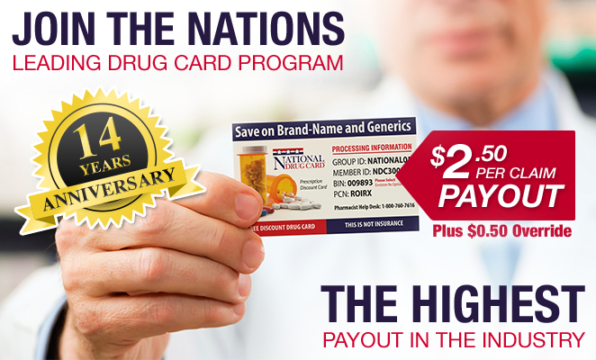Since 2005 National Drug Card, the nation’s leader in Pet and Human discount drug cards, is pleased to announce our Affiliate Program. With millions of uninsured Americans paying full price on their healthcare costs, there is a huge demand for our prescription drug card program. Join today to participate in their savings and your prosperity. Start building a monthly commission today
